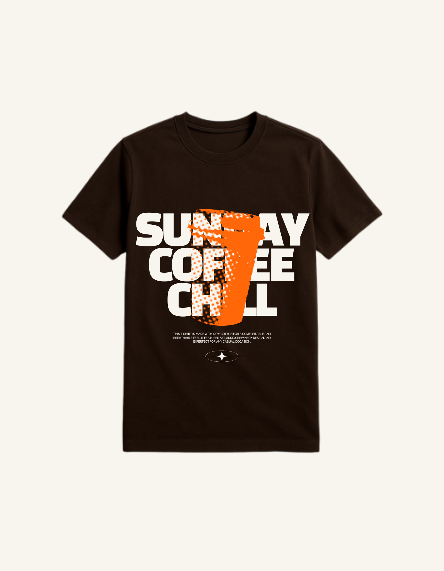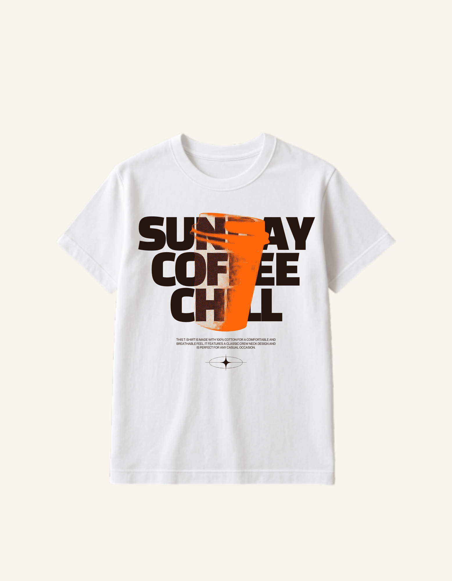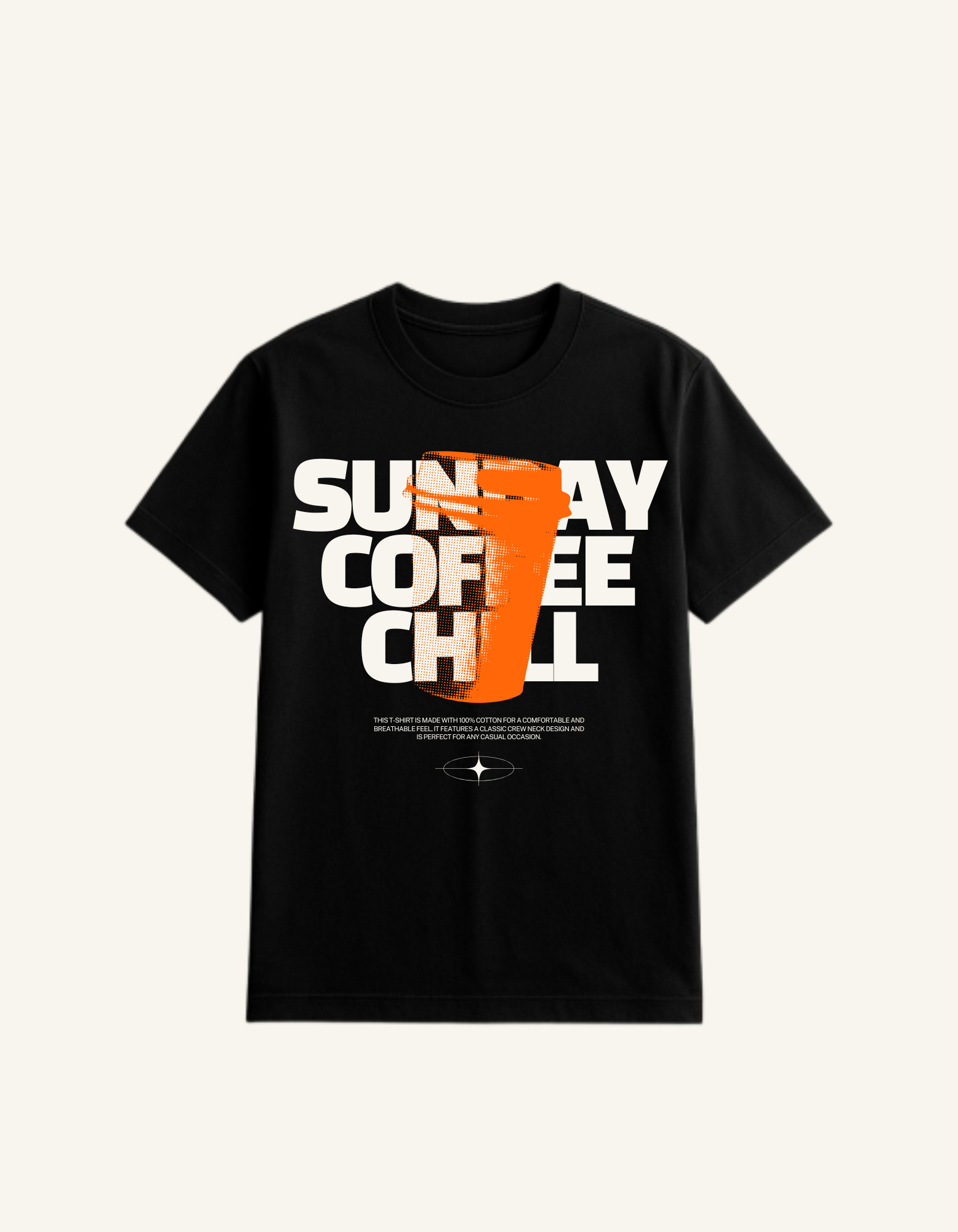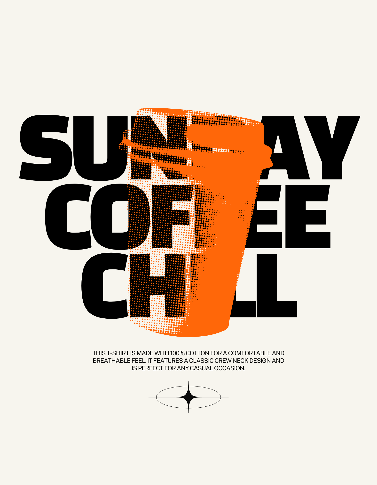 Black and Orange Minimalist Halftone Illustration Coffee Quote T-Shirt